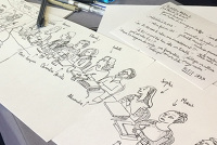 Dessiner pour la presse est un exercice de célérité, souvent tendu. Des reportages anglés, des textes et des photos associés, tout est à considérer sans délai.
